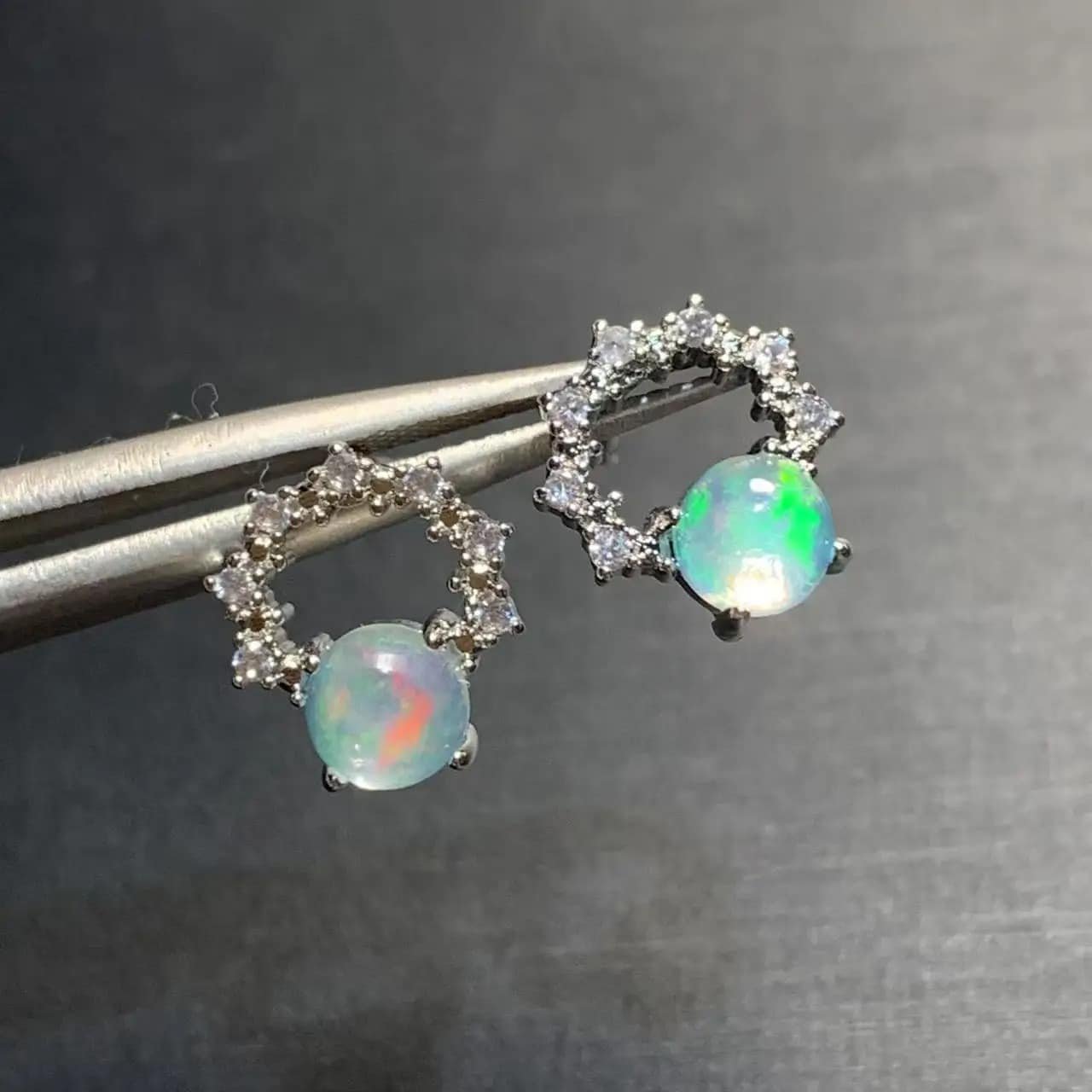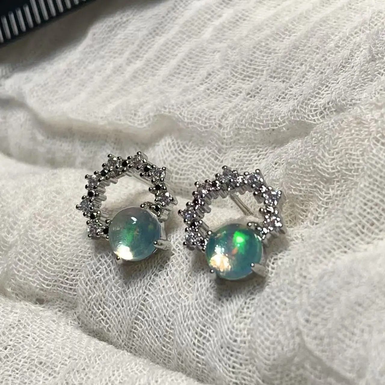 Un cercle de lumière se dessine autour de chaque pierre, comme une constellation discrète suspendue à vos oreilles. Les boucles d’oreilles en argent et opale blanche d’Australie « Sphères Australes » captivent par leur éclat changeant : la surface nacrée révèle des reflets irisés, oscillant entre vert tendre, or subtil et bleu opalin. Cette pierre rare évoque les aurores boréales miniatures, saisies dans un écrin argenté.